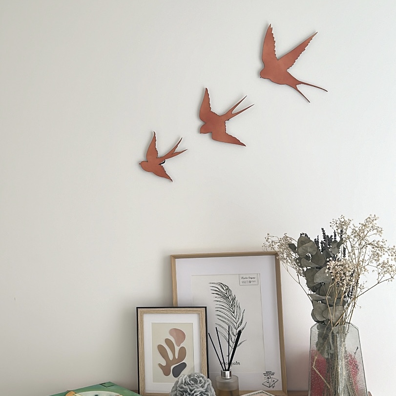 Chaque hirondelle est unique et raconte une histoire, apportant une atmosphère paisible et poétique à votre maison.